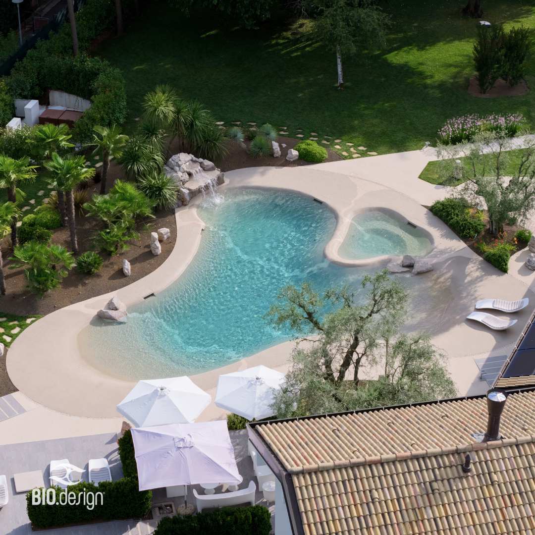 Las piscinas de arena de Bio.design, también llamadas piscinas playa, cuentan con muchas características innovadoras, comenzando por la limitada invasividad ambiental, que permite que la piscina encaje armónicamente en el entorno, y sin uso de hormigón armado para su construcción. Por lo tanto, el medio ambiente es el primer beneficiario del sistema Bio.design, y es que tanto los productos utilizados, la impermeabilización, o el peso de la estructura son una verdadera innovación. Un sistema para crear lujo y bienestar, respetando el medio ambiente al mismo tiempo.